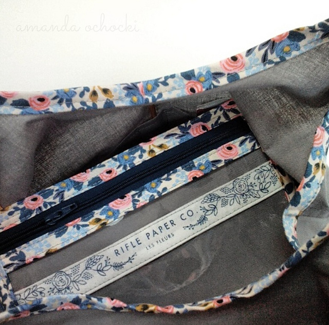 Granted I had made two other Stowe Bags out of “less special” fabric before I made this one, just to make sure the sewing kinks were worked out ..haha I can’t help it, I know I would have beat myself up, if I f’d up the bag with the super special fabric! Gads would you look at that logo, even the Rifle Paper edge selvages are too pretty!