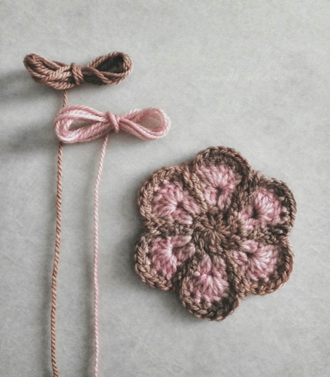 In a pink and brown phase and another re-crochet of an old favorite circa 2010. ♡