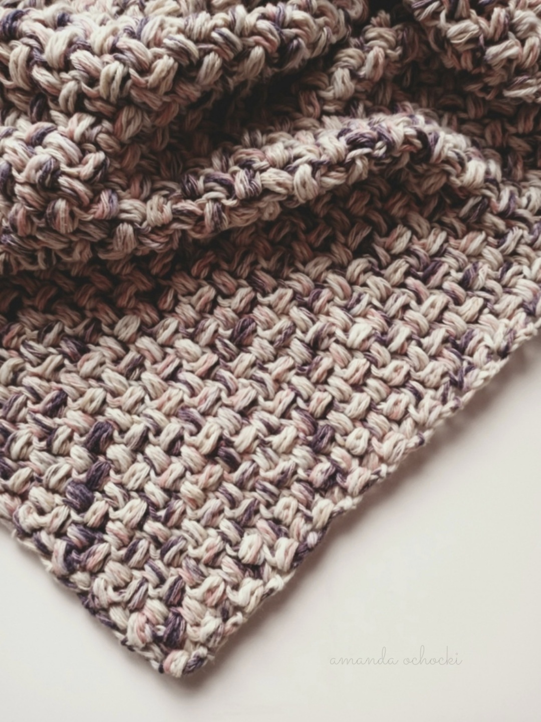 This is the stash yarn used (I think it might be discontinued though) it’s a aran weight acrylic, kinda splitty, but the color was fun. I don’t have a lot of worsted/aran in my stash so this was one of the very limited choices I had enough yardage of (4 balls). I think my next one will be fingering/sock weight wool, which the stash is is still bursting with and probably in some mellow cream color because that’s me.
