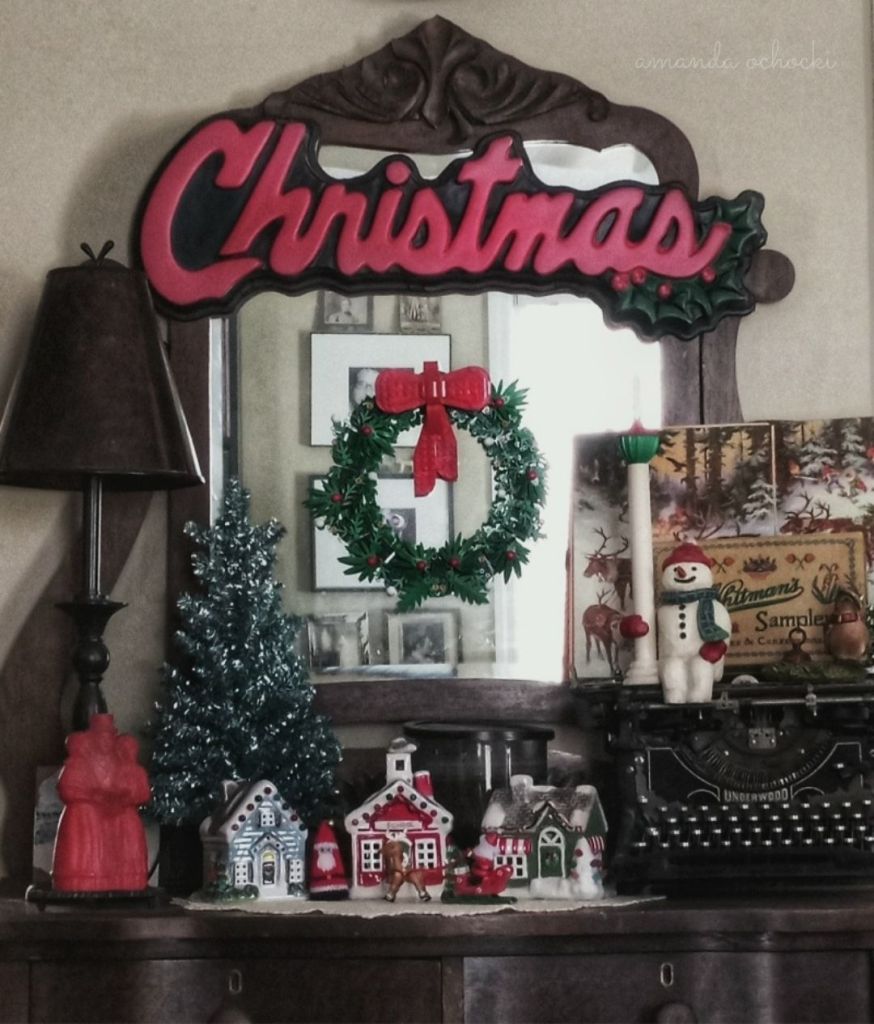 This dresser is one of our top 3 things to decorate. A real Christmas wish would be for those Avon wax carolers to magically still smell like cinnamon.