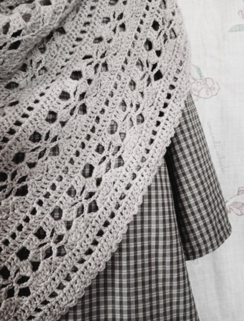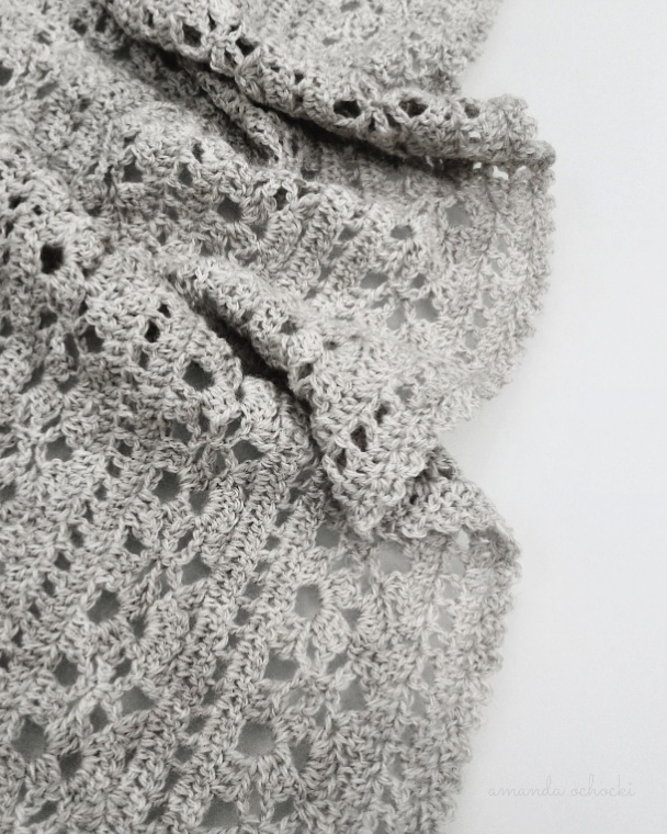 There really isn’t a final border on this shawl, it finishes with just a simple row of dc, which is so nice because I wet block everything and pinning out shawl points and curves is miserable, and I’m not really a ornate edging kind of person ..but I couldn’t resist adding the tiniest baby scallop border (my standard move).