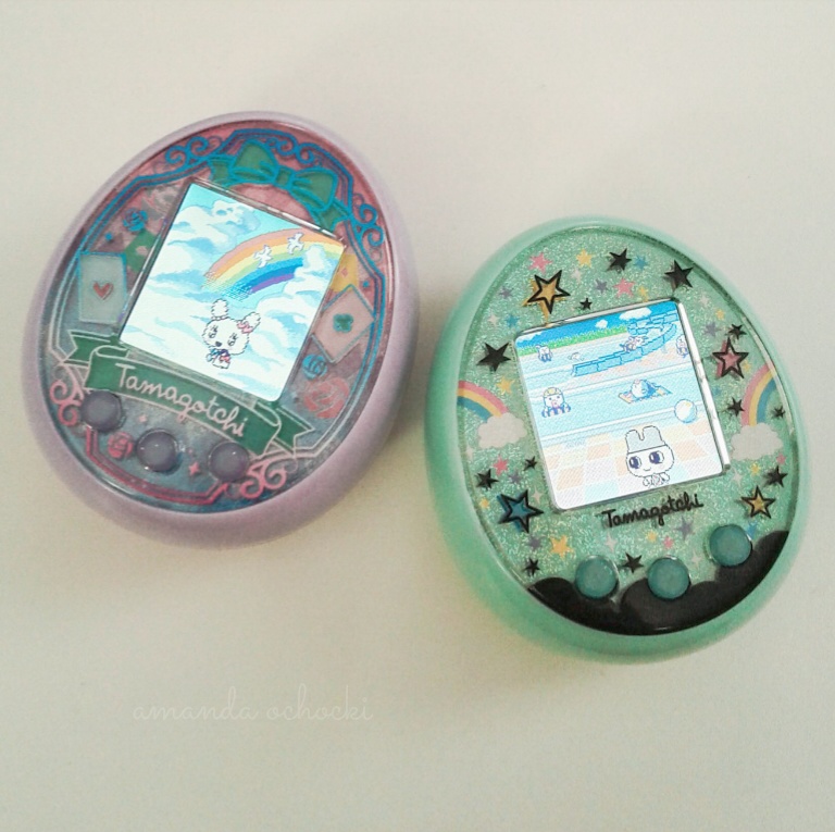 Virtual pets became really popular when Lex was little, they were these colorful palm sized egg toys on a keychain, with the (not so) simple premise of caring for a digital character. They were funny and entertaining at first, but being a kid they didn’t hold her attention. Now 20+ years later they re-released these cute things with bigger eggs, holographic sparkles, full color graphics and even more interactive game play. Lex got us each one as a nostalgic treat and it was more fun than I remember ..until she asked if I could babysit hers while she went to work ..wait, what? Flashback to little Lex crying over a sick and dying (or dead) tama ..yeah these things die if you neglect them! Thankfully it didn’t take us long to learn the new game now had a babysitting feature.