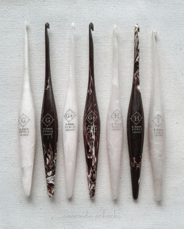 Hook: Cream Streamline Resin Hook (also pictured above is the cafe hook, both retired colors) by Furls Crochet.