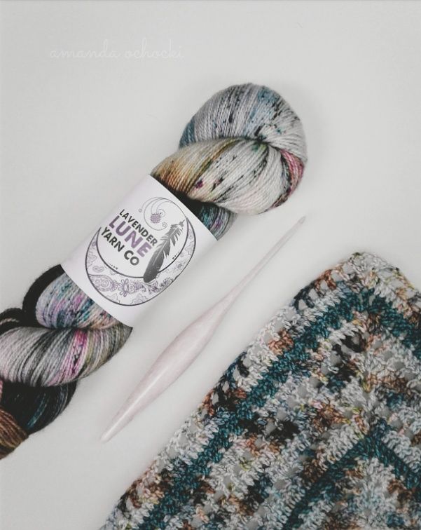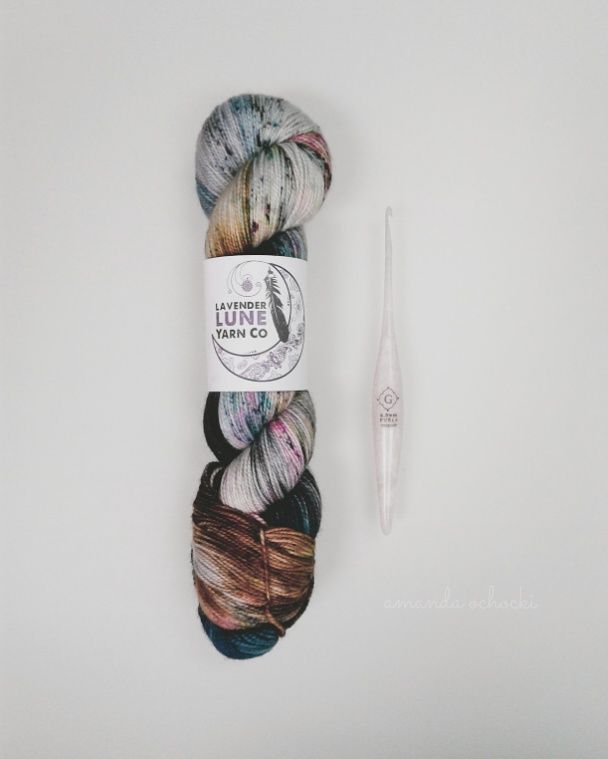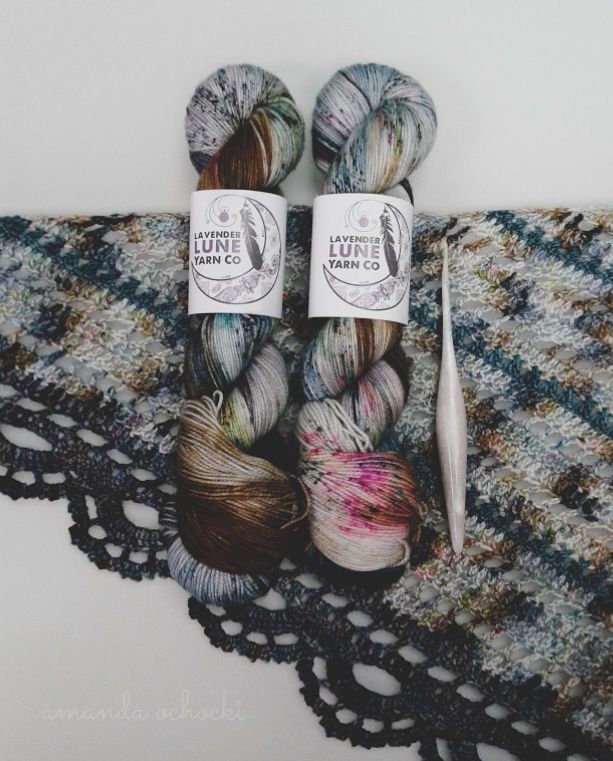 Gosh I think it was way back in 2019 when I was asked to crochet a sample shawl for Lavender Lune Yarn, I remember being completely smitten with the hanked skeins, they were so beautiful like an impressionist woody floral. I had no clue how it would crochet up, it turned out nothing like I expected, it wasn’t bad, but it also wasn’t as incredible as when it was undisturbed in the hank, that peony pink was but a stitch here and there and melted away into the background. Years later I’m still terrible at anticipating how variegated yarns will work up (why always splotches or zigzags?!?) but I also have zero regrets that younger me bought a few extra skeins of that pretty yarn. 💘